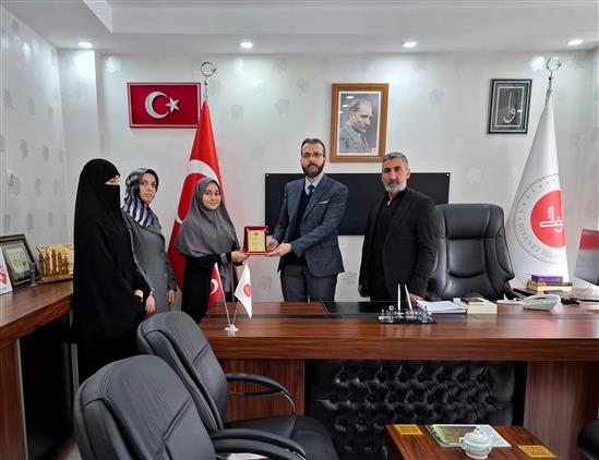 Gösterdiği azim, sabır ve istikrarlı gayreti dolayısıyla öğrencimiz Elif Azra Açık, İlçe Müftümüz Erkan Karaca tarafından plaketle ödüllendirildi.